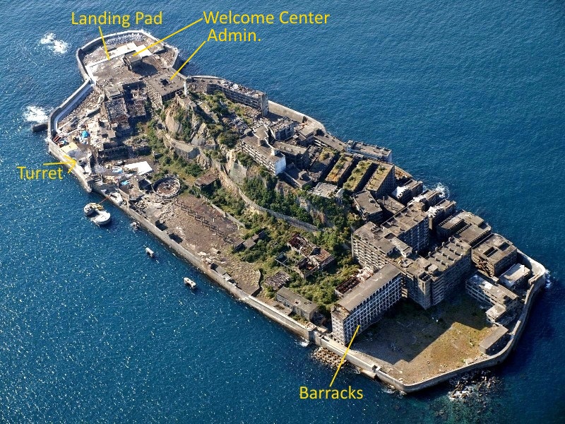 on the west shore, which looks like a dockyard. Some of the pylons are still