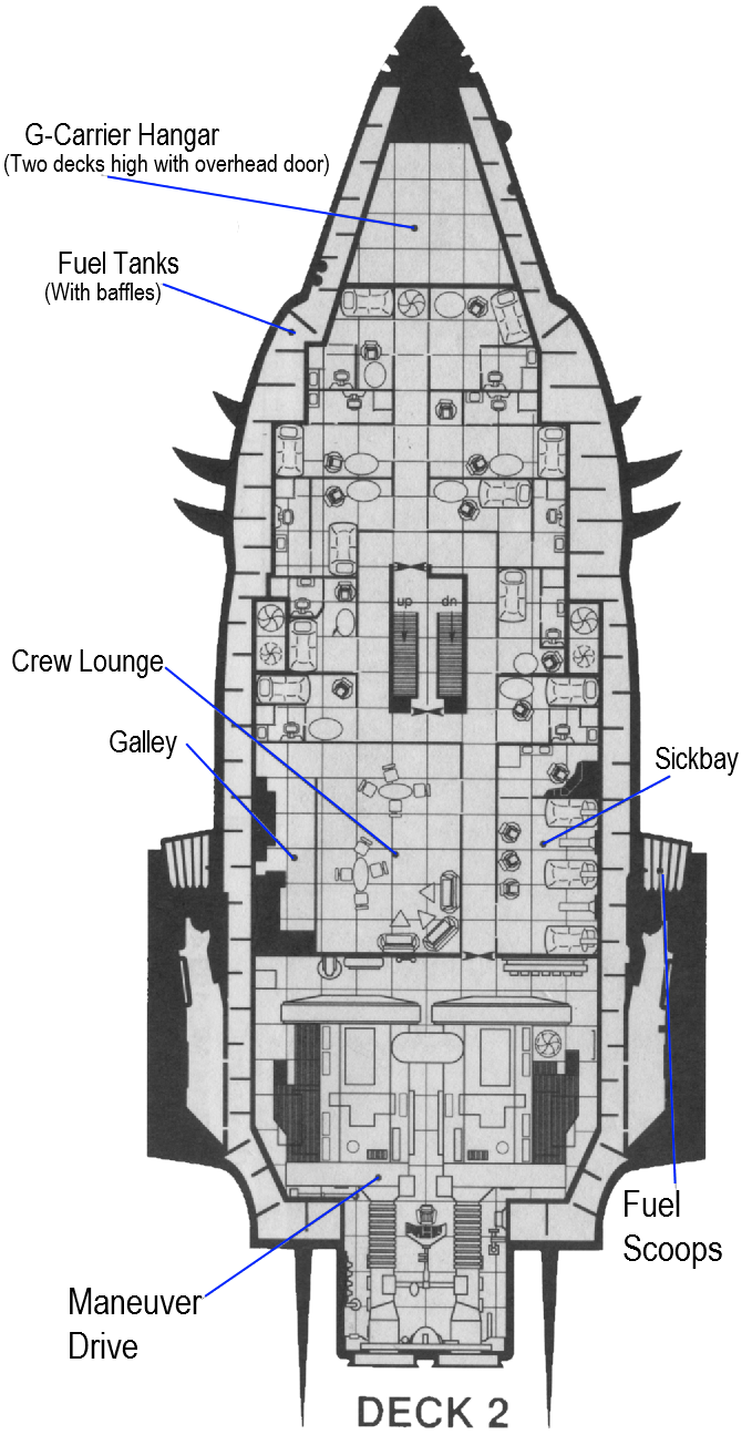 Accommodations: | 10 staterooms, 1 captain's suite, 1 1st Officer's Suite, Sickbay, Crew Common Area w full galley, 5 low berths. |