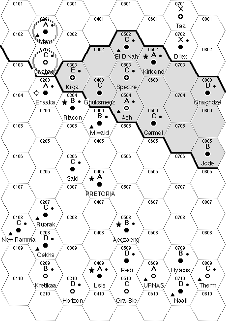 Hex | Name | UWP | BS | Trade | TPPG | AL | Stellar |