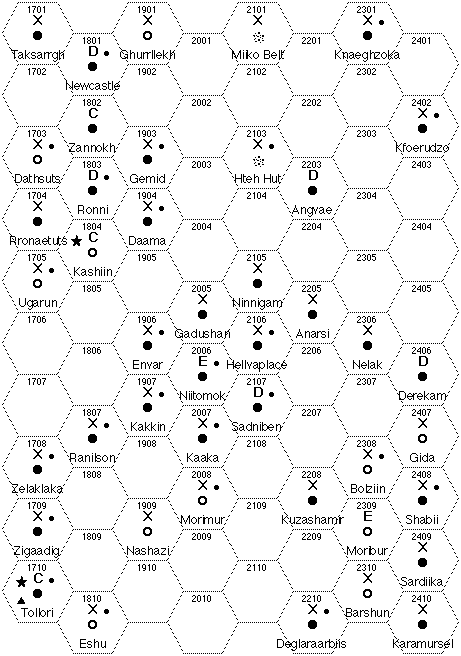 Hex | Name | UWP | BS | Trade | PPG | AL | Stellar |