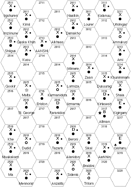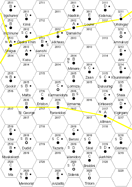 Hex | Name | UWP | BS | Trade | PPG | AL | Stellar |