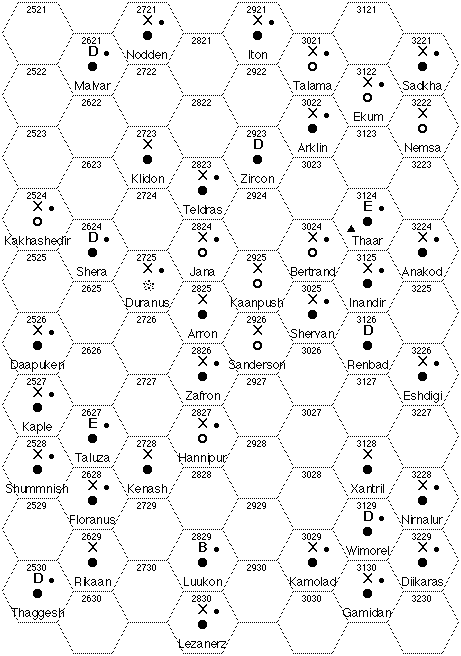 Hex | Name | UWP | BS | Trade | PPG | AL | Stellar |