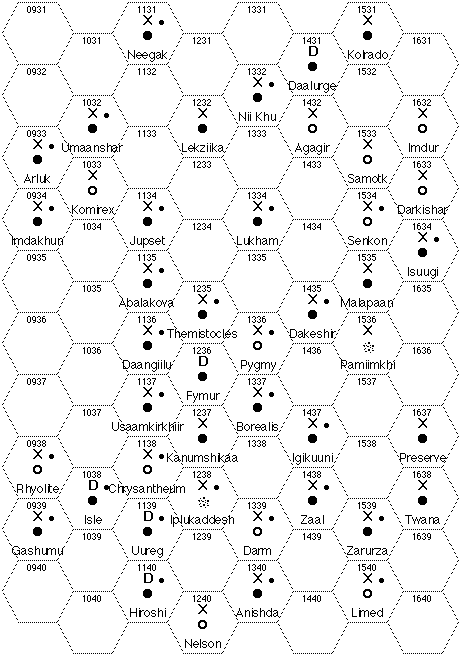 Hex | Name | UWP | BS | Trade | PPG | AL | Stellar |